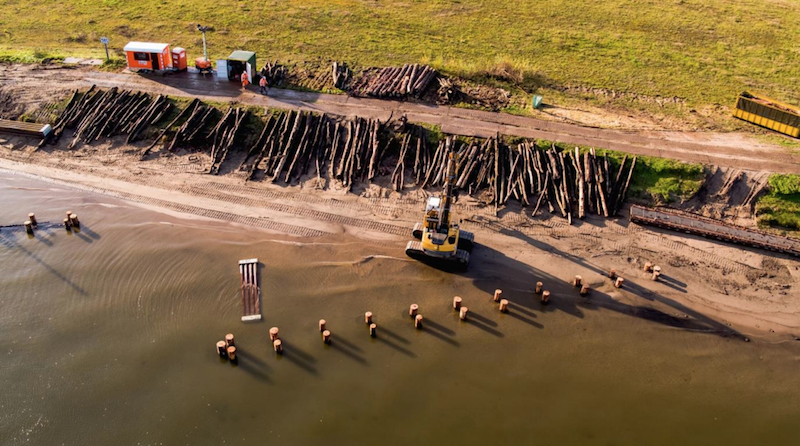 Van de stammen zijn houten schermen gemaakt zijdelings op de oever. Het is een proef om te kijken of het lukt om zo meer zand naar de oever te geleiden en golven te dempen, zodat de vooroever aanzandt in plaats van erodeert. Bovendien zou het hout ook de ecologie van de rivier kunnen verrijken en de kosten van baggeren verminderen.
