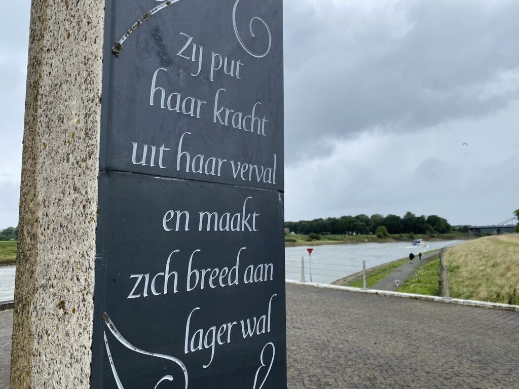 Johanneke ter Stege schreef een prachtig gedicht bij de afsluiting van Ruimte voor de Rivier. Het heeft een gebeiteld plekje gekregen op De Worp in Deventer.