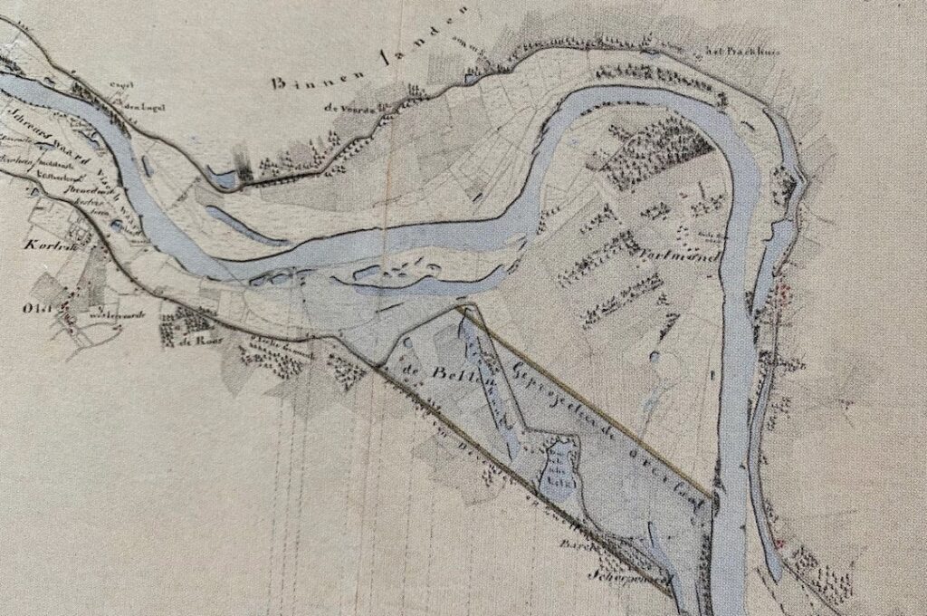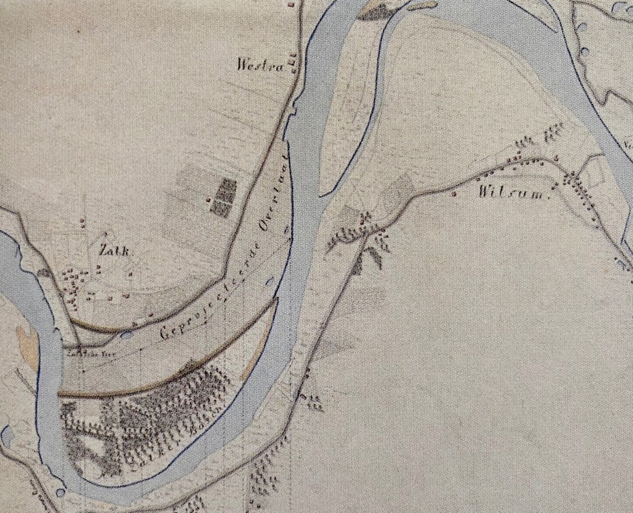 Dit zijn twee voorstellen uit 1830 om bochten uit de IJssel te halen bij Zalk (links) en bij Fortmond (rechts). Het is er gelukkig nooit van gekomen. (bron: Atlas van de IJssel):