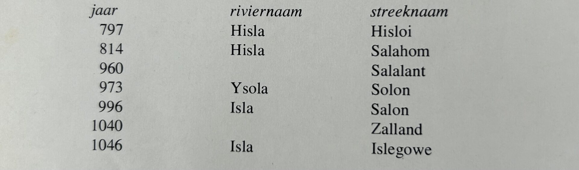 Een hele oude schenkingsacte uit 792 spreekt over bossen langs de Hislam of Hisla, dus met een ‘h’. Die ‘h’ viel rond het jaar 1.000 weg uit de riviernaam, dus toen vanaf dat moment was de i dominant. In een oude stadsrekening van Deventer uit 1348 wordt voor het eerst gesproken over Ysla. Rond 1400 begint Ysel gangbaar te worden in diverse varianten.