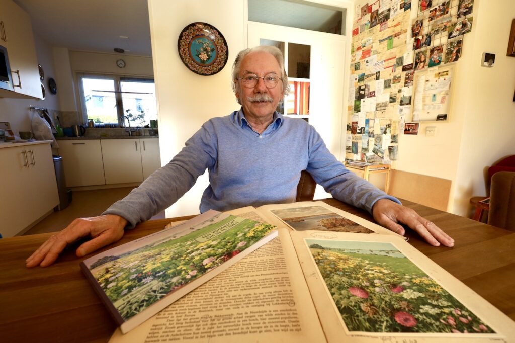 De bloemenrijkdom op de rivierdijk geschilderd door Jan Voerman junior, is bijna te mooi om waar te zijn. Over de romantische rivierdijk in de Verkade-albums.