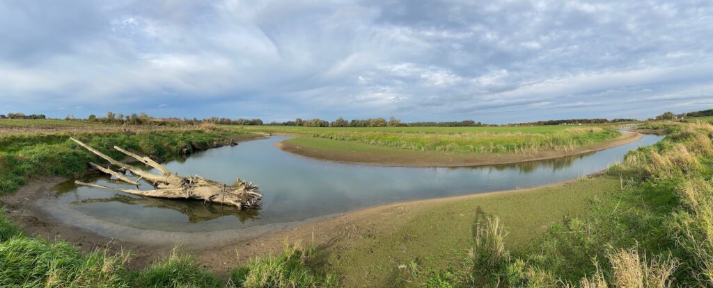 Dit is een sfeerimpressie van een natuurgeul langs de Geldersedijk bij de IJssel met verankerd rivierhout: