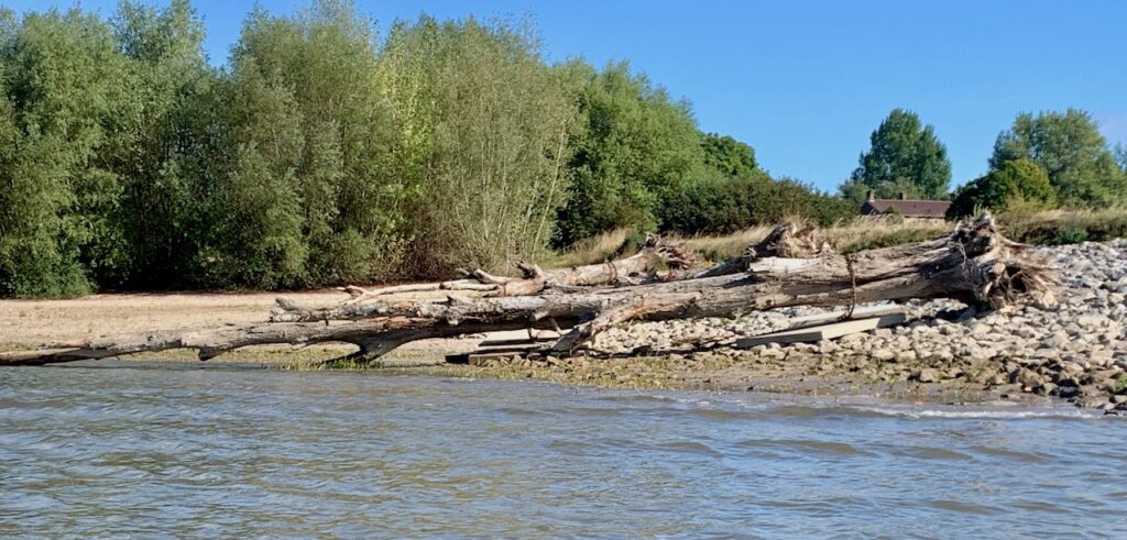 Natuurcompensatie haven: 15 verankerde dode bomen op rivieroever Rijn bij Spijk